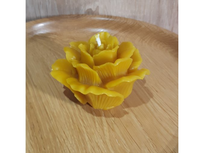Přírodní svíčka ze včelího vosku ve tvaru rozkvetlého květu růže.