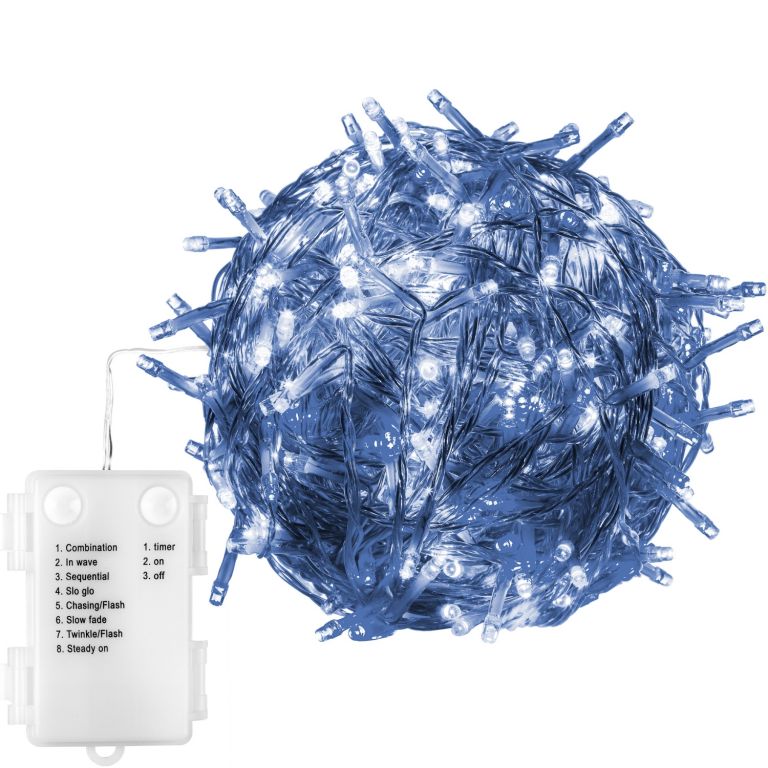 Světelný řetěz je vhodný pro vnitřní i venkovní použití - jak na okno či chodbu, tak i na dům nebo stromek. Osvětlení není výhradně určeno pro dobu Vánoc, ale můžete ho využít i pro osvětlení Vašeho stanu či zahrady během letních měsíců. Nejvíce na něm oceníte napájení na baterie - už nemusíte řešit vzdálenost k zásuvce. LED diody jsou oblíbenou náhradou za klasické žárovky. Oproti klasickým žárovkám LED diody nevyzařují teplo, jsou odolné proti otřesům a můžete díky nim ušetřit až 90% energie, které byste jinak spotřebovali na klasické žárovky. Průměrná životnost LED diody je 2000 hodin svícení (normální žárovka cca 1000 hodin v závislosti na svítivosti). Na krabičce s bateriemi můžete nastavit časovač (osvětlení bude 6 hodin od nastavení svítit a 18 hodin v nečinnosti), nebo můžete osvětlení ručně zapnout či vypnout. Samozřejmostí je také 8 světelných funkcí: různé kombinace, svícení ve vlnách, sekvenční svícení, pomalá záře, rychlé blikání, pomalé slábnutí, jiskřivé blikání, stálé svícení.