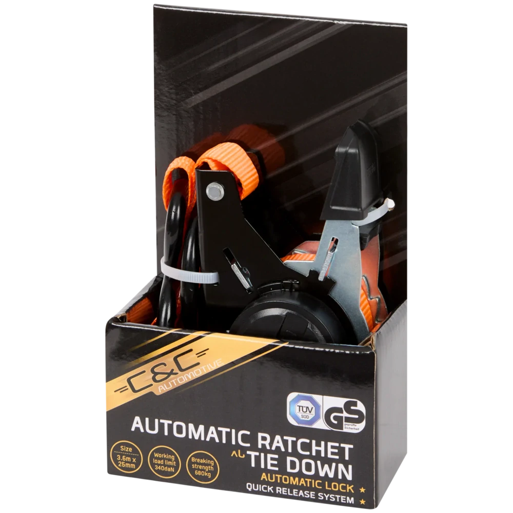 S tímto automatickým upínacím popruhem s ráčnou značky C&C upevníte náklad rychle, bezpečně a snadno