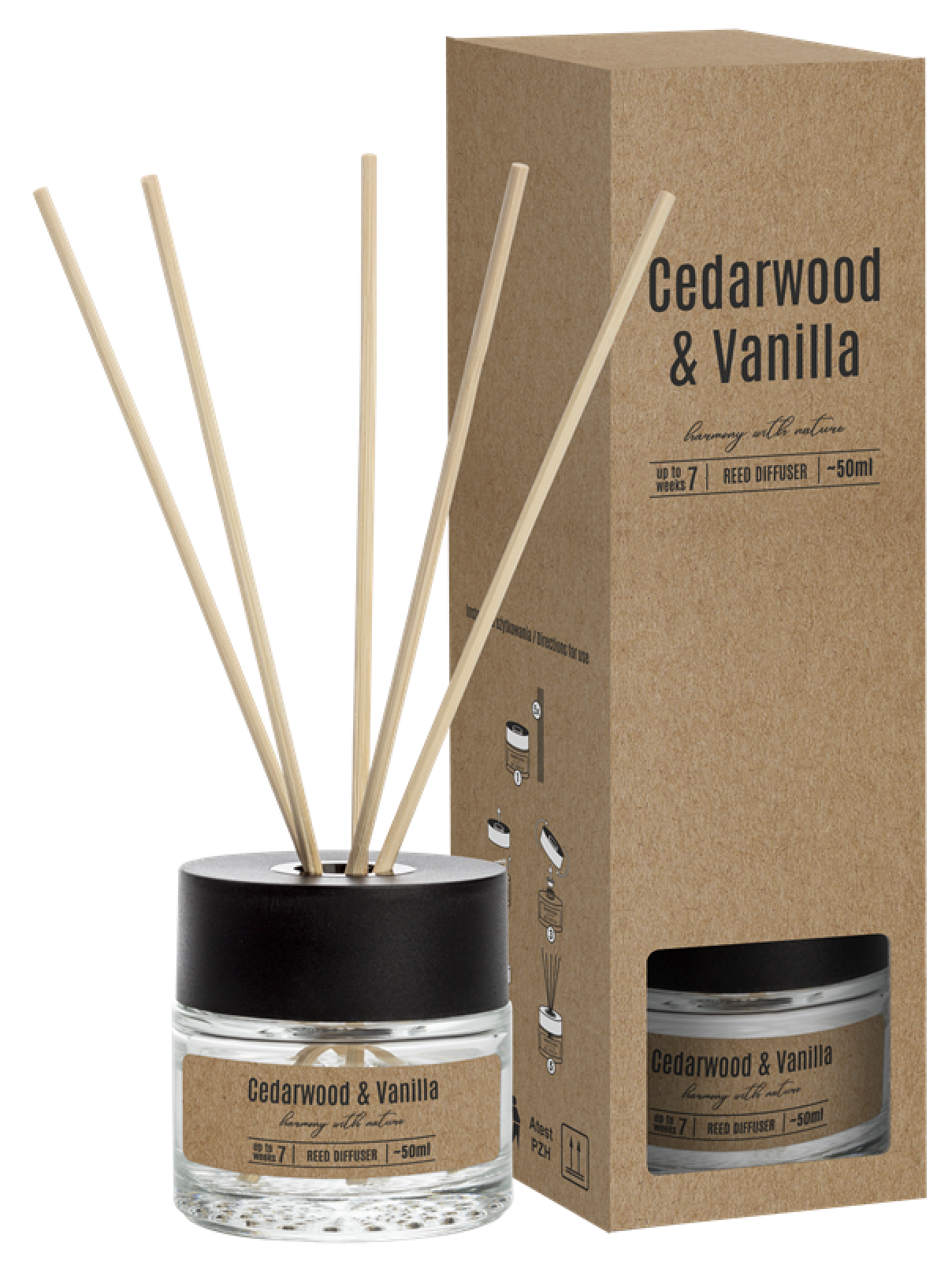 Cedarwood and Vanilla reed difuser je vonný olejový difuzér s vůní Cedrového dřeva a vanilky.