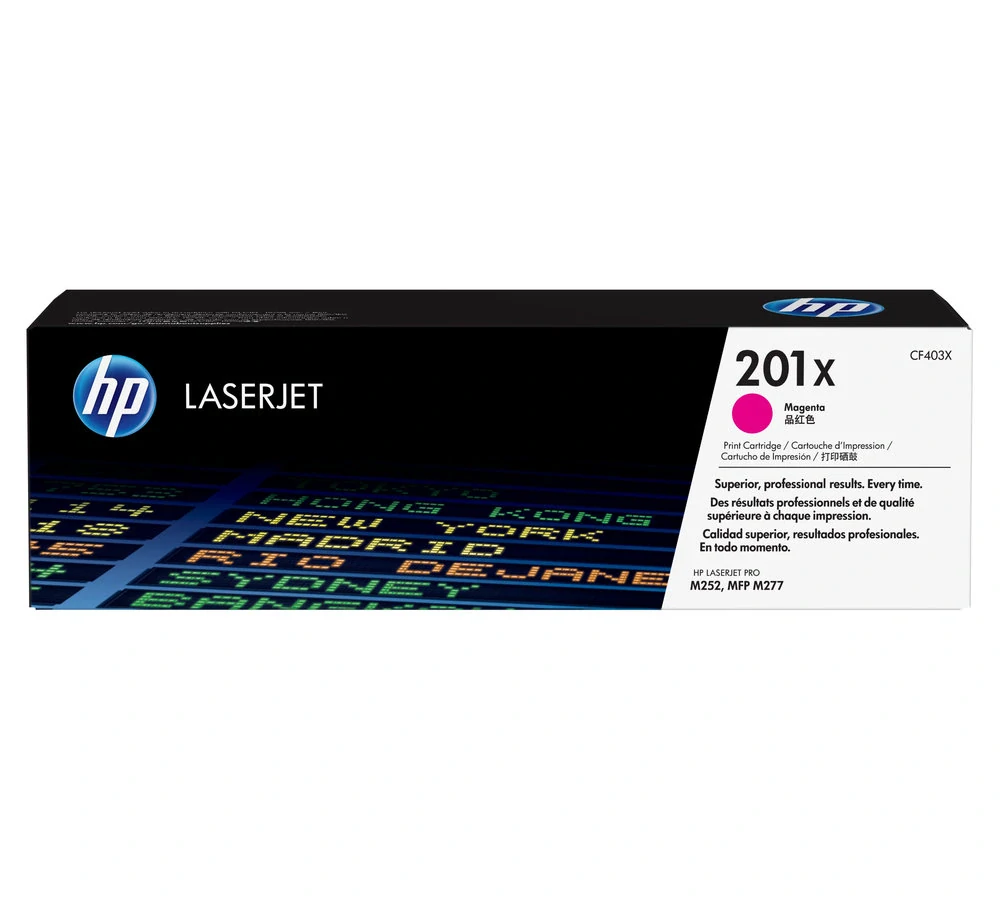 Originální červený toner HP CF403X magenta, větší varianta HP CF403A (č.201A) označený také jako HP č.201X magenta